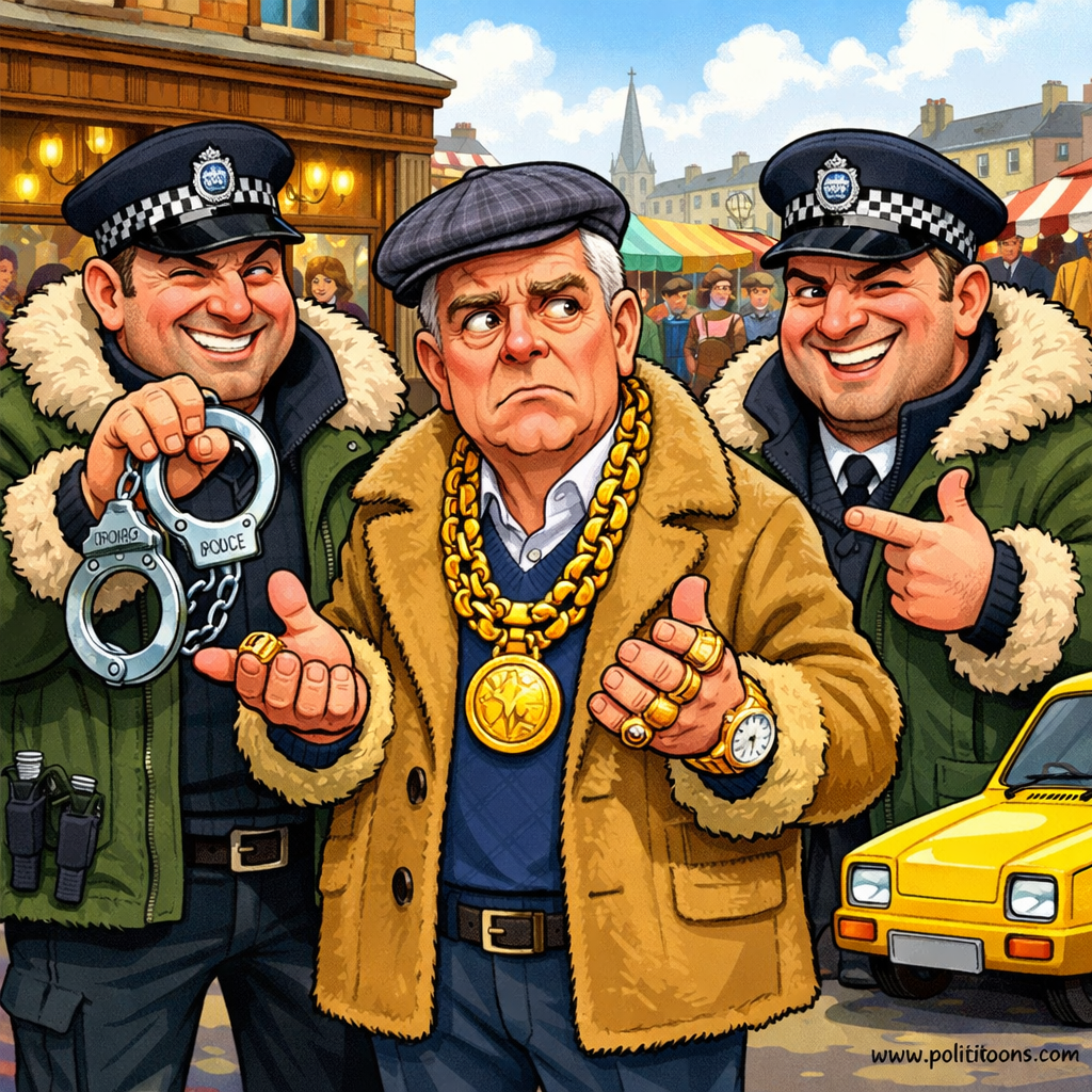 “Prince Andrew finally got cufflinks, but not the royal kind—turns out being born with a silver…”Sign up free to read this jokeGet unlimited access to our full archive of political cartoons and jokes.Sign up freeHeadline SourcesAndrew Mountbatten-Windsor arrested on suspicion of misconduct in public officevia BreakingNews