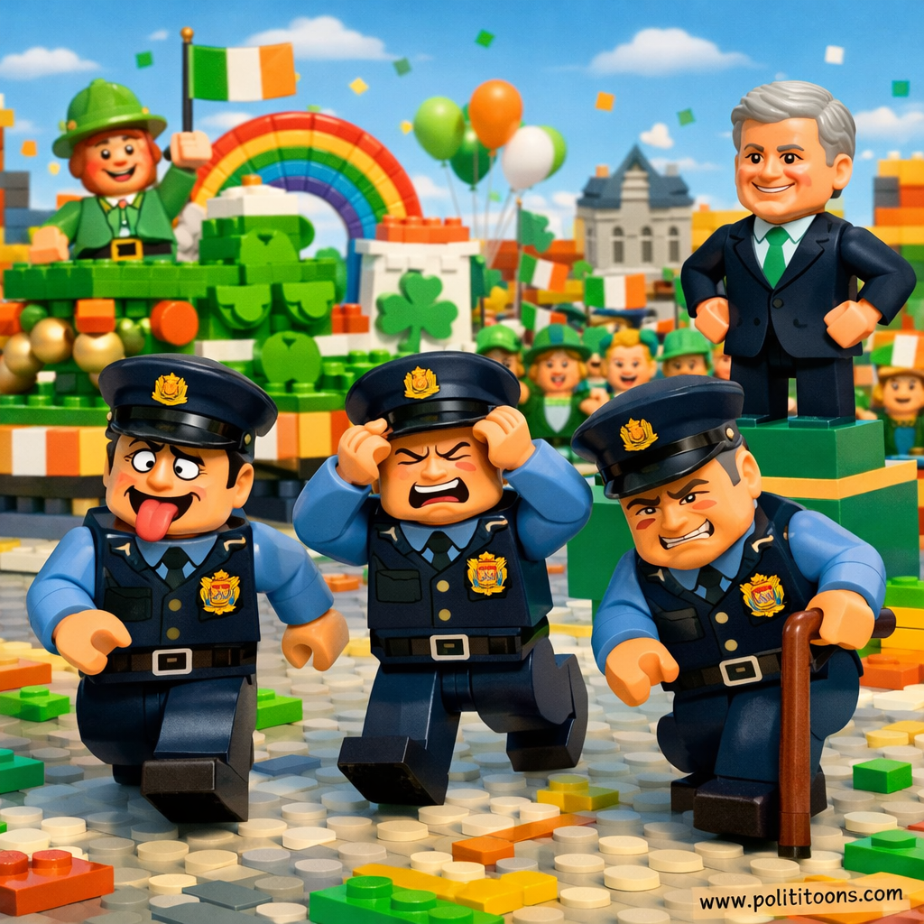 “Ireland’s Gardaí are threatening a ‘blue flu’ on St.”Sign up free to read this jokeGet unlimited access to our full archive of political cartoons and jokes.Sign up freeHeadline SourcesGarda group raises threat of ‘blue flu’ on St Patrick’s Day if issues not resolvedvia Irish Time