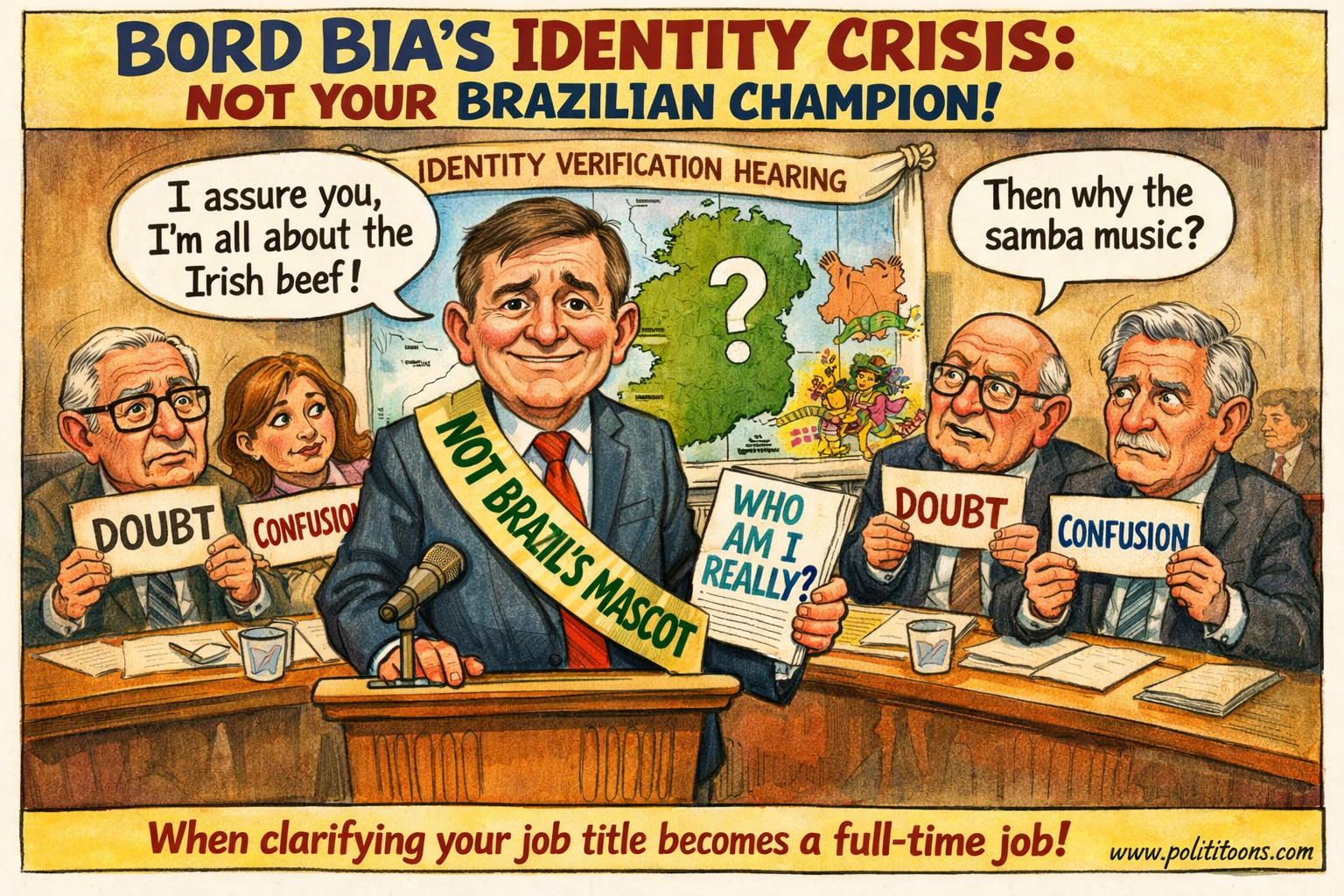 “In a move reminiscent of Nixon's 'I'm not a crook', the Bord Bia chairman assured everyone he's not…”Sign up free to read this jokeGet unlimited access to our full archive of political cartoons and jokes.Sign up freeHeadline Sources‘I’m not a champion for Brazil’, Bord Bia chairman tells committeevia BreakingNews