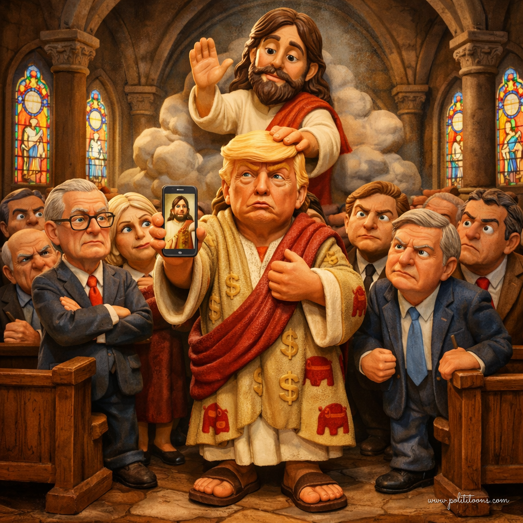 “Trump’s coalition is so divided that even their Jesus memes need fact-checking—finally, a Second Coming with lower approval ratings than the first.”